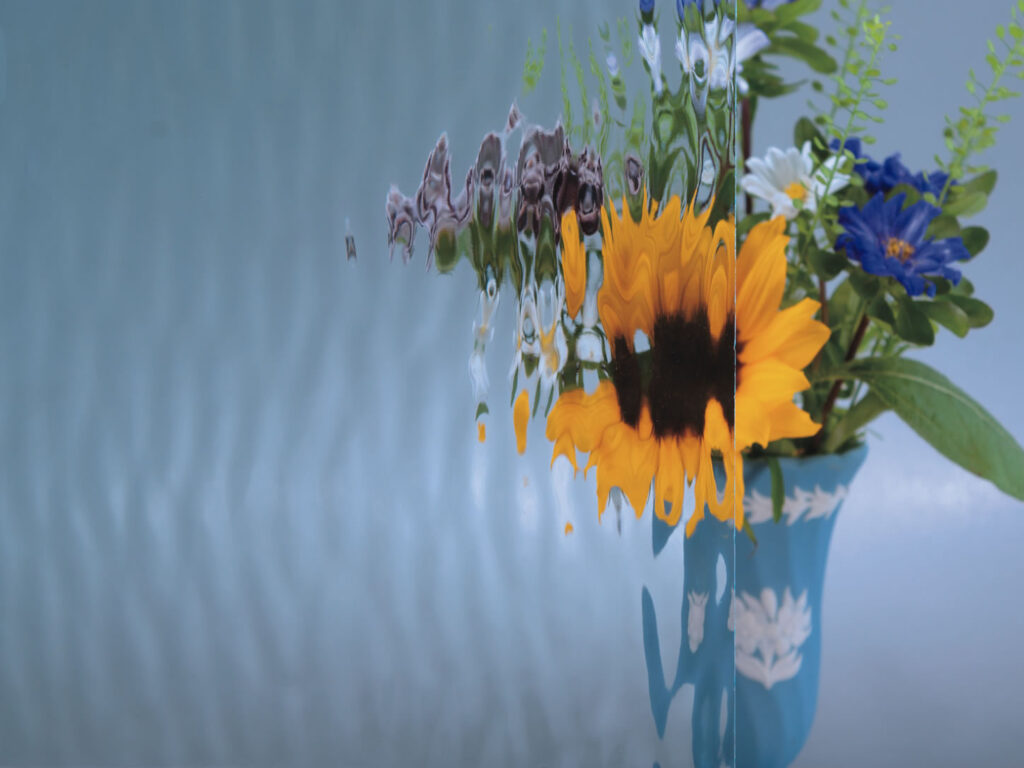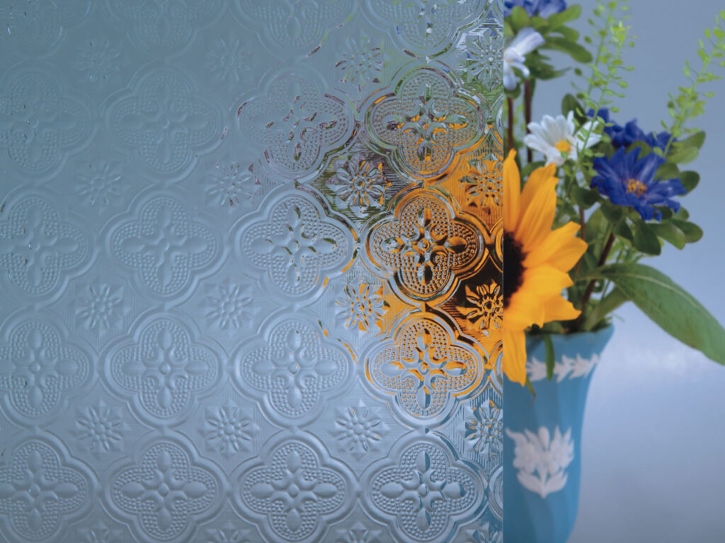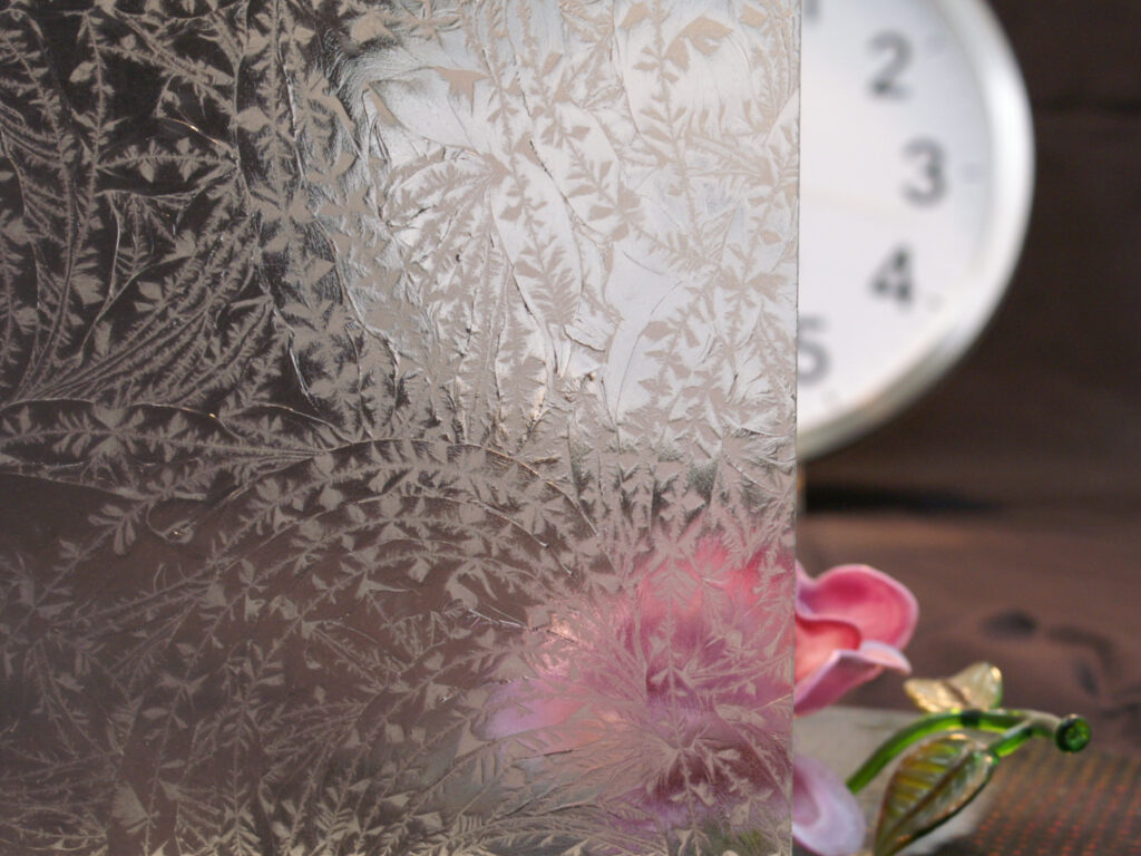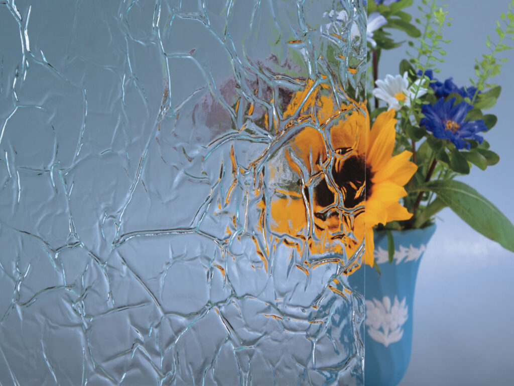 細かい凹凸上に炎のようなデザインが表されたガラスです。