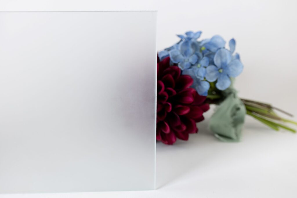 フロストガラスは、サンドブラストした(すりガラスの工程)ガラスの表面を化学処理し、なめらかな肌合いに仕上げたガラスです。