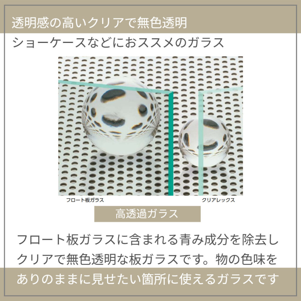 物の色味をありのままに見せたい所に使えるガラスです。
