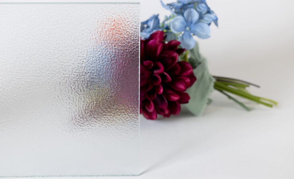 このガラスは「ロールアウト法」と呼ばれる製造技術によって作られます。溶けたガラスをデザインロールと通常のロールの間に通すことで、片面に模様が形成されます。模様は光の透過を抑えつつ、柔らかく拡散させるため、明るさを保ちつつ外部からの視線を遮る効果があります。