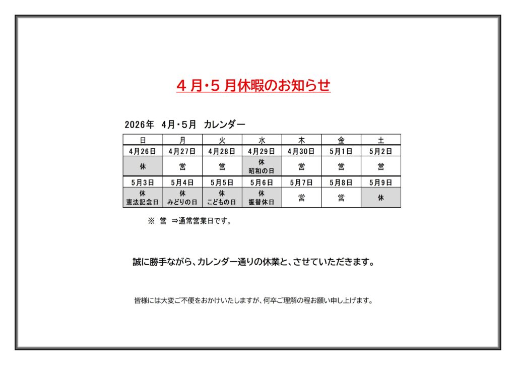 ※連休中、連休前後は配達に遅れが出る可能性があります。お急ぎの方はお早めにご相談ください。