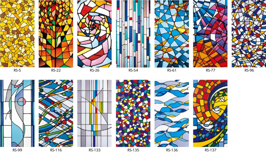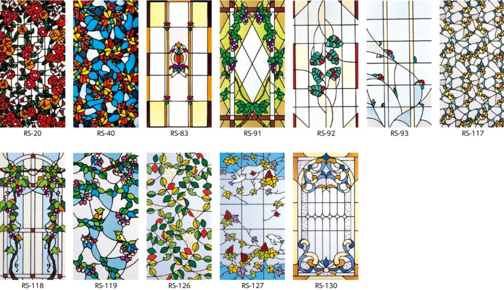 1枚のガラスに表現されているため、ガラス片を沿線でつないだ従来のステンドグラスより強度が高く、大きなサイズで使用できます。
