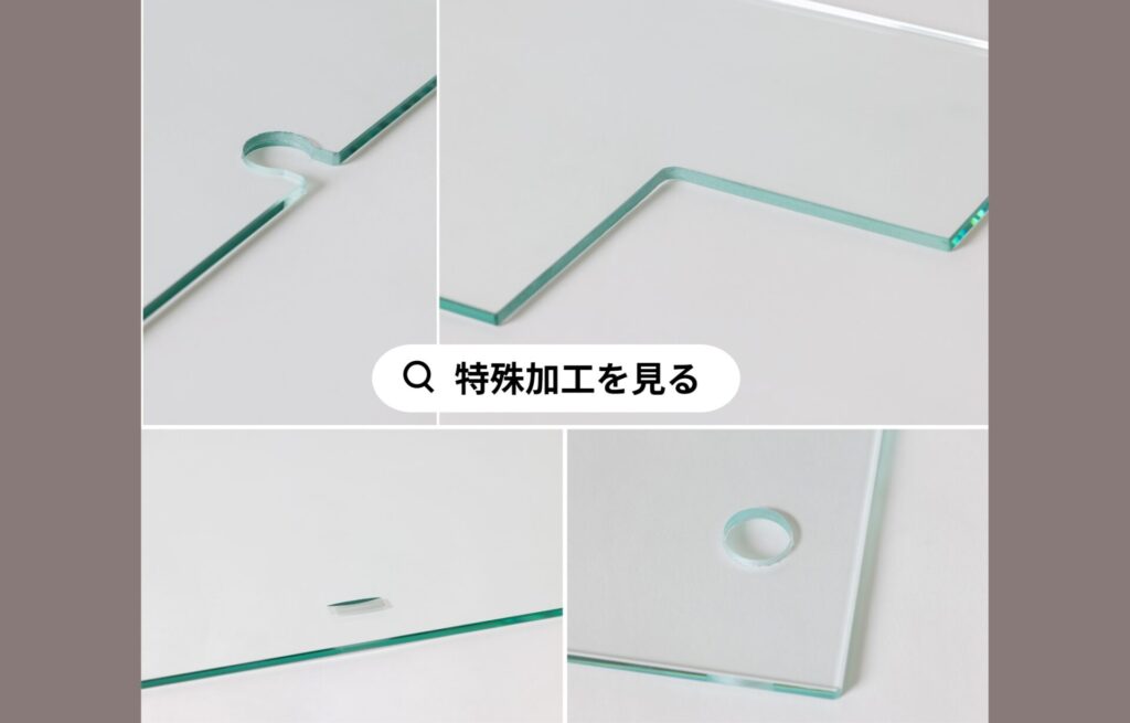 切り欠き加工では、角に丸みを持たせることで、ガラスが割れるリスクを軽減できます。