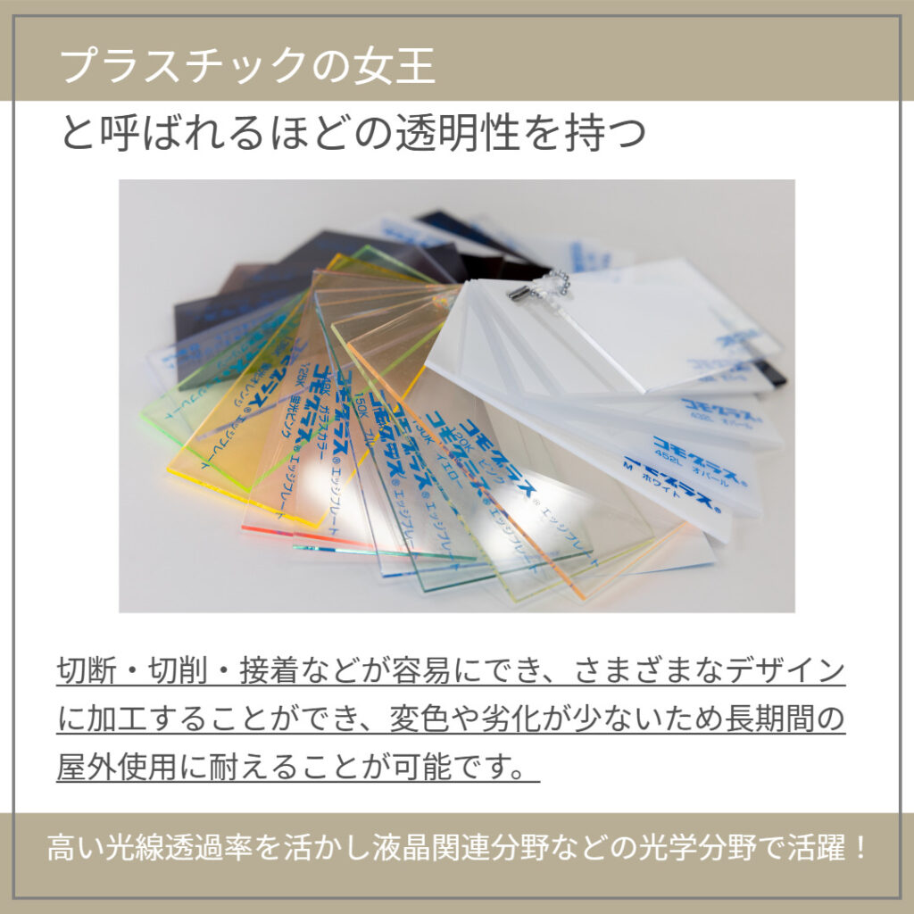 アクリルは、衝撃に強く割れにくい一方で、表面に傷がつきやすいという特徴があります。