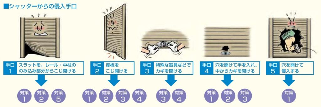外部側からは施解錠できない内錠が4カ所に付いています。