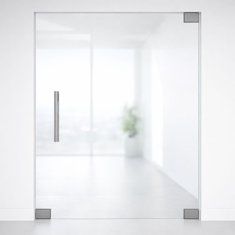 - 上部下部共にコーナー金具で構成されているガラスドア