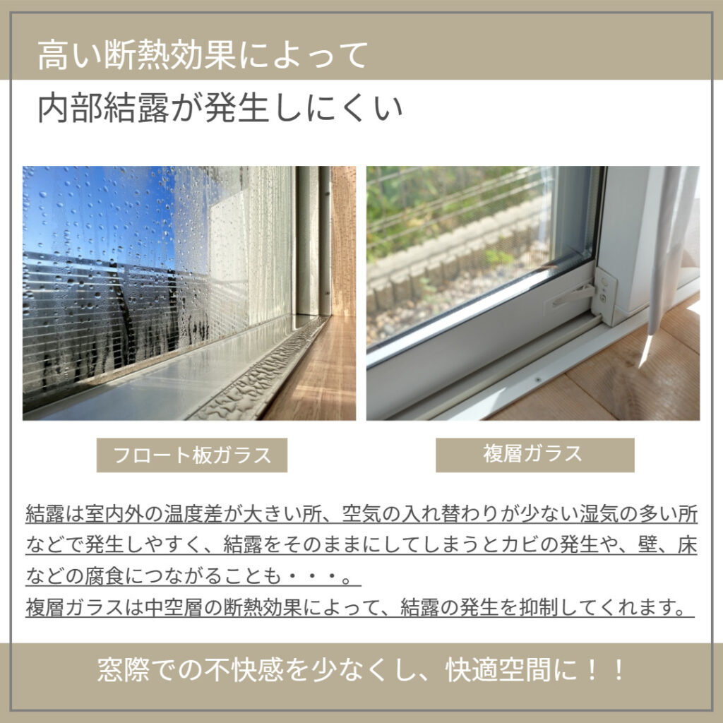 複層ガラスの2倍の断熱効果があるので、太陽の暖かさを取り入れながら、部屋の暖かい空気を閉じ込めますので、冬も窓からの冷気で室内温度が下がり、寒い思いをすることなく、快適に過ごすことができます。