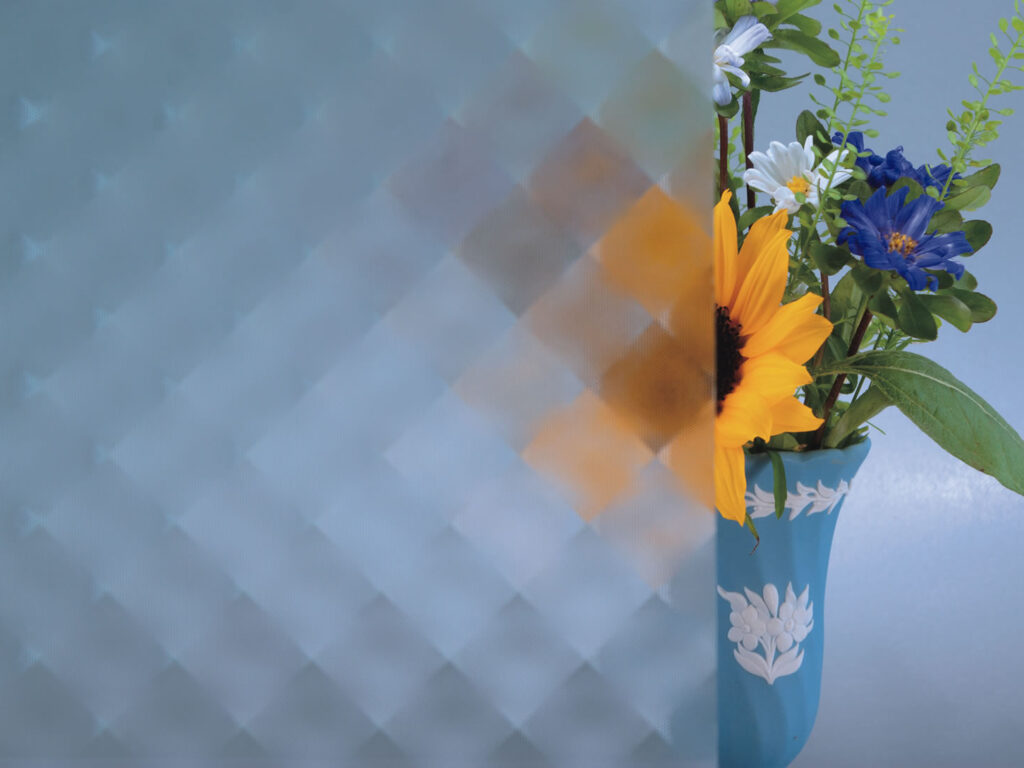 斜め方向の格子柄をしたデザインのガラスです。