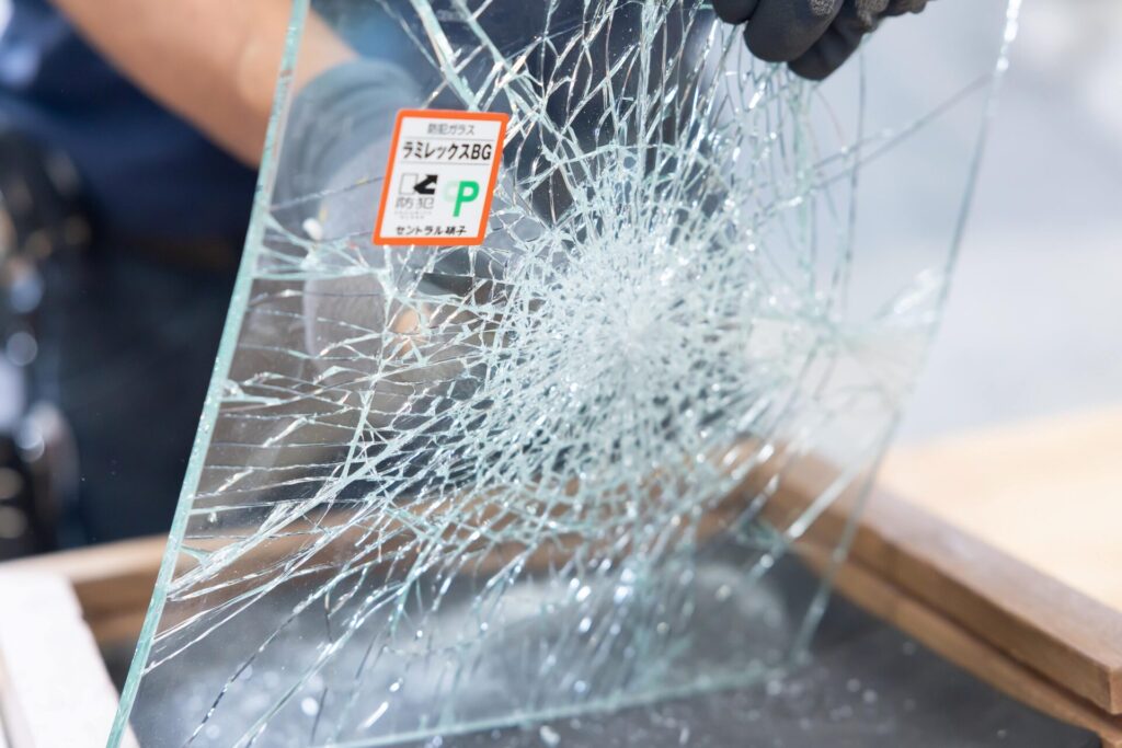2枚のガラスが強力に接着されているので、耐貫通性に優れ、万一破損しても破片がほとんど飛び散りません。